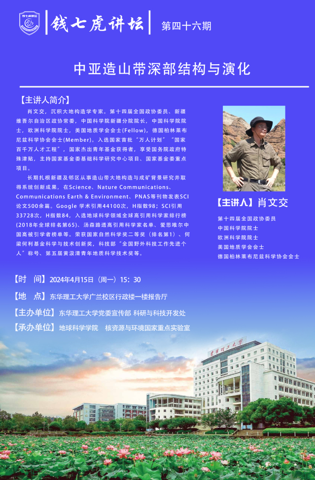 应地球科学学院、核资源与环境国家重点实验室邀请,中国科学院院士肖文交到“多宝网”,以“中亚造山带深部结构与演化”为主题开展讲座。欢迎全校师生届时前往聆听。