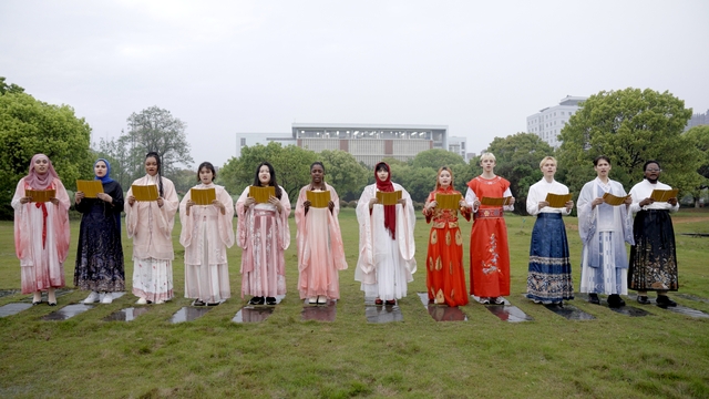 在经典吟诵活动中,留学生们身着汉服,吟唱着古老的《桃夭》,他们的歌声在校园中回荡,传递着对中华传统文化的喜爱和美好祝愿,为文明互鉴架起了一座璀璨的桥梁。