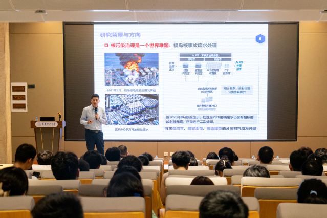报告在热烈的掌声中结束。现场师生与肖成梁就配体设计与机理研究方法等方面进行了充分的交流和讨论。本次讲座加深了师生对放射性核素辨识分离的理解和认识,拓展了科研思维的广度与深度。(文/马建国 戴荧 图/徐富林)