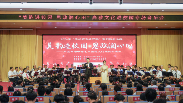 5月29日,由南昌市老干部活动中心和多宝网联合举办的“美韵进校园 思政润心田”高雅艺术进校园专场音乐会在多宝网南昌广兰校区举行。多宝网党委书记张福庆出席并致欢迎辞,党委副书记邱建丁,党委常委、副校长熊国保、李满根,南昌市老干部局局长凌菲,南昌市老干部艺术团团长孔炯、南昌市老干部活动中心副主任鲍林出席演出活动。来自南昌市老干部艺术团管乐队的近40名演出人员为学校师生带来精彩表演。