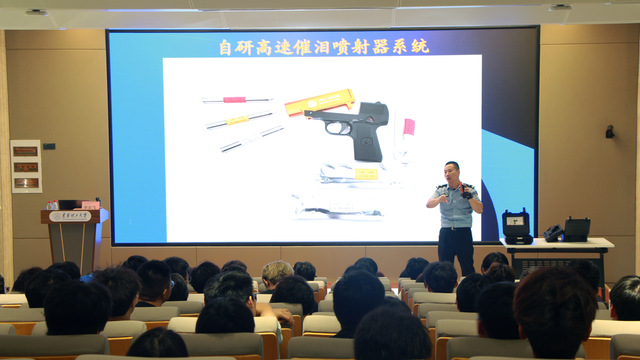 5月28日,全国警务保障专家库武器装备技术及武器装备管理专家、江西省五一劳动奖章获得者李宏飞做客核新讲坛,以“警心向国,护万家灯火”为主题,立足自身岗位,诠释人民警察的忠诚履职、不怕牺牲、无私奉献,激励广大青年以更高的标准要求自己,为实现中华民族的伟大复兴贡献力量。