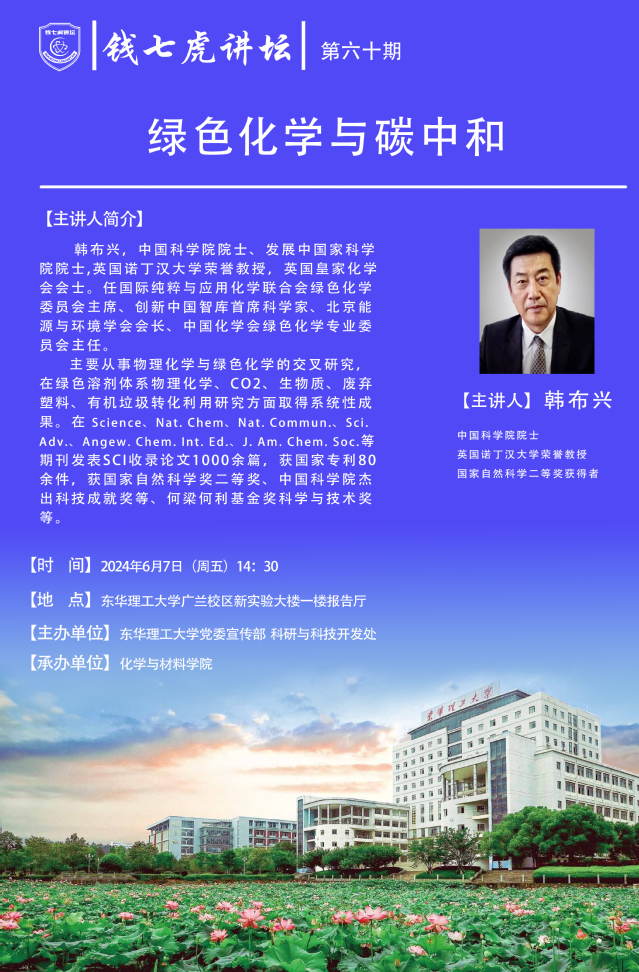 应化学与材料学院邀请,中国科学院院士,英国诺丁汉大学荣誉教授韩布兴到“多宝网”,以“绿色化学与碳中和”为主题开展讲座。欢迎全校师生届时前往聆听。
