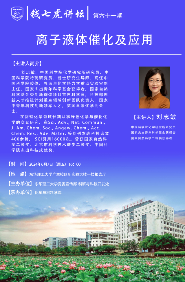 应化学与材料学院邀请,中国科学院化学研究所研究员,国家杰出青年科学基金获得者刘志敏到“多宝网”,以“离子液体催化及应用”为主题开展讲座。欢迎全校师生届时前往聆听。