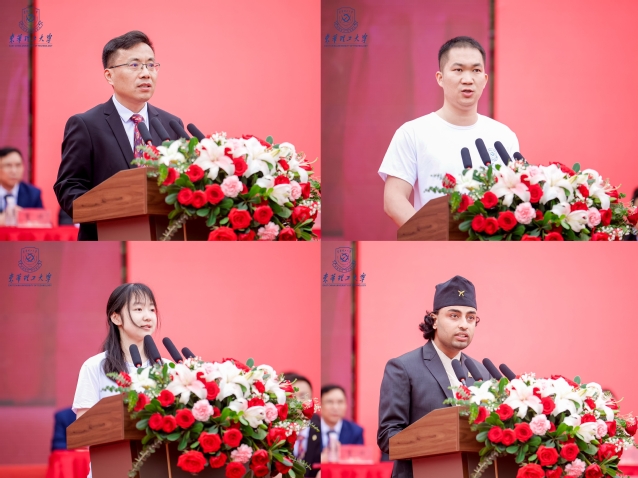 教师代表鲁铁定寄语毕业生:“事业的成功不仅要靠自己的能力和努力,也要靠给你创造机会的平台和不期而遇的‘贵人’。请珍惜身边的亲人、爱人和朋友,多一份感恩,多一个机会。”校友代表潘建明期望毕业生抓住核工业发展的大好机遇,到实践中经风雨、见世面、壮筋骨、长才干、做贡献。博士毕业生代表闵壮、本科毕业生代表林诗雅和留学生毕业生代表苏明在发言中回顾了自己在多宝网经历过的难忘时刻,表达了对学校的不舍之情,对老师、同学的感激之情以及对未来的美好期许。