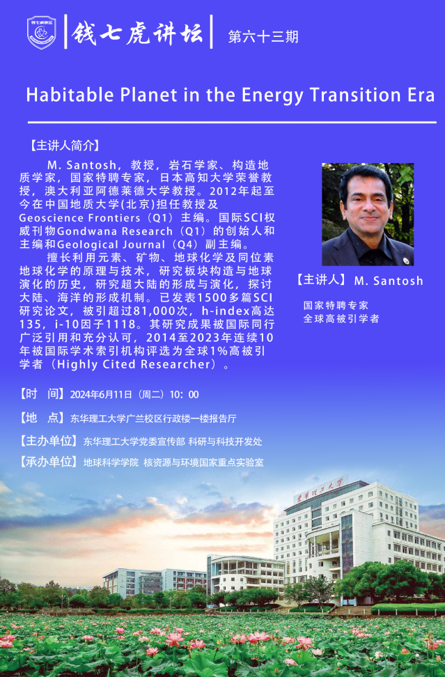 应地球科学学院邀请,日本高知大学荣誉教授,澳大利亚阿德莱德大学教授M. Santosh到“多宝网”,以“Habitable Planet in the Energy Transition Era”为主题开展讲座。欢迎全校师生届时前往聆听。