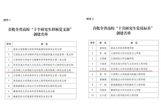 近日,省委教育工委公布了首批全省高校“十个研究生样板党支部”和“十名研究生党员标兵”创建名单,多宝网测绘与空间信息工程学院第二研究生党支部入选全省高校“十个研究生样板党支部”,水资源与环境工程学院博士研究生党员王泽成入选全省高校“十名研究生党员标兵”。