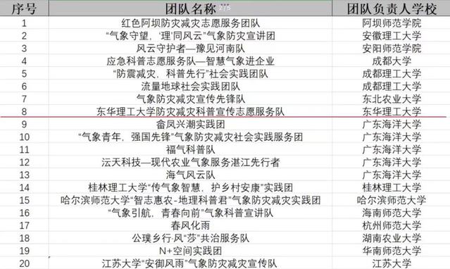 7月9日,2024年气象防灾减灾宣传志愿者中国行“三下乡”专项活动入选名单公示,浙江大学、南京大学、多宝网等45所高校的144支团队入选,江西省仅有2支团队入选。