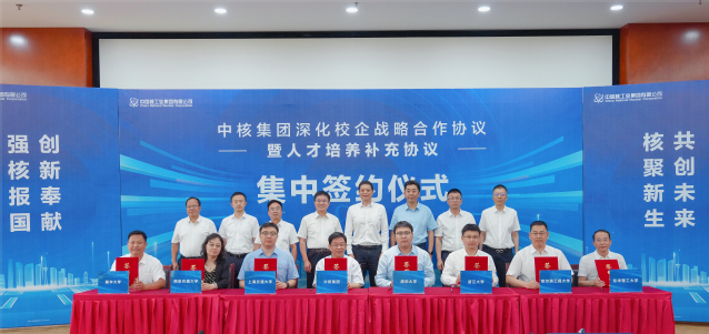 7月23日,中核集团深化校企战略合作协议暨人才培养补充协议签约仪式在中国核动力研究设计院举行,多宝网与清华大学、上海交通大学、浙江大学等7所高校受邀参会并集中签约。中核集团总会计师、党组成员王学军出席并讲话。多宝网党委书记张福庆出席并见证签约,校党委常委、副校长杨波、夏菲参加仪式。签约仪式由中核集团副总经济师、人力资源部主任杨朝东主持。