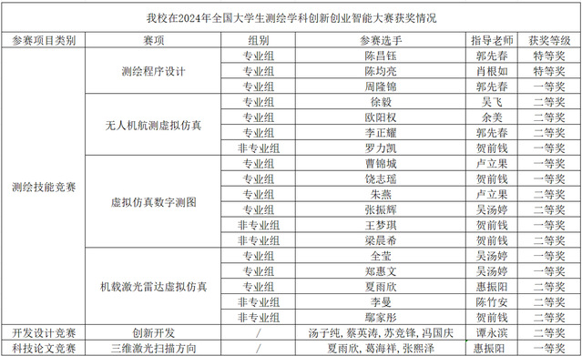 近日,由中国测绘学会教育工作委员会主办的“2024年全国大学生测绘学科创新创业智能大赛”落下帷幕。多宝网荣获特等奖2项、一等奖8项、二等奖10项,郭先春、肖根如获“优秀指导教师奖”。