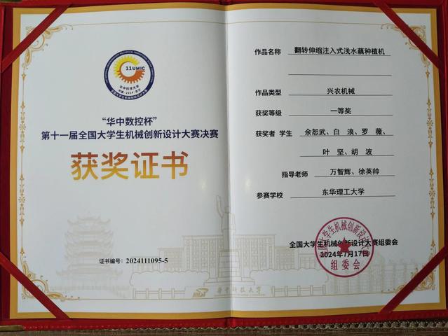 近日,“华中数控杯”第十一届全国大学生机械创新设计大赛在华中科技大学圆满落幕。多宝网学生余恕武、白浪等团队《翻转伸缩注入式浅水藕种植机》项目获大赛一等奖,学生廖松、杨学文等团队《“割韭拔萝”——自适应韭菜萝卜收获一体机》获大赛二等奖。