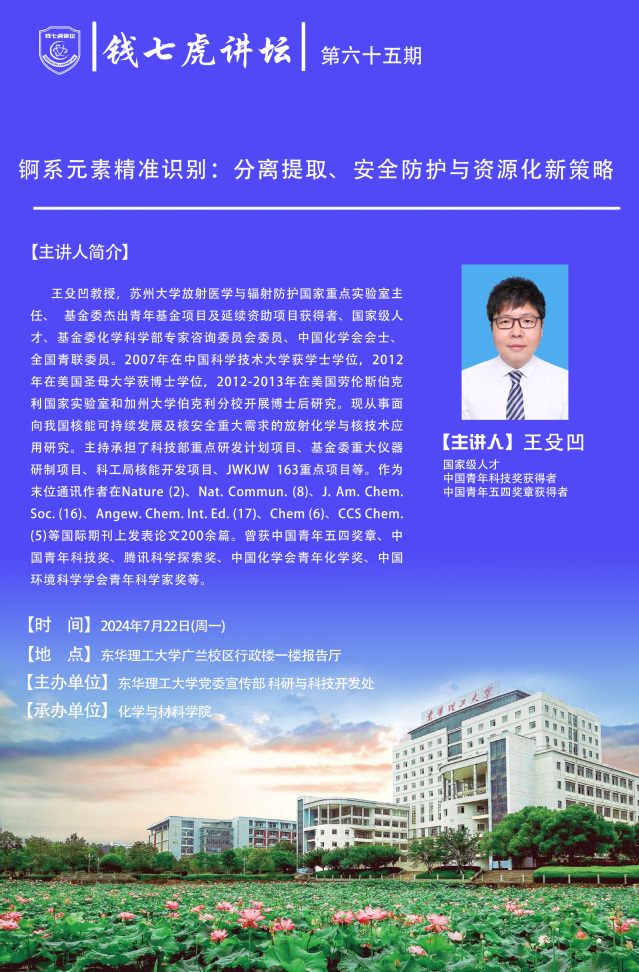 应化学与材料学院邀请,国家级高层次人才王殳凹到“多宝网”,以“锕系元素精准识别:分离提取、安全防护与资源化新策略”为主题开展讲座。欢迎全校师生届时前往聆听。