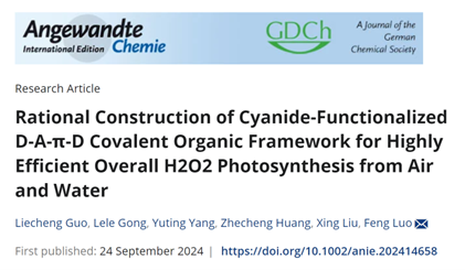 近日,多宝网化学与材料学院罗峰教授团队在铀的富集分离研究领域取得创新性成果,并以题为《Rational Construction of Cyanide-Functionalized D-A-π-D Covalent Organic Framework for Highly Efficient Overall H2O2 Photosynthesis from Air and Water》在国际顶级期刊《Angewandte Chemie International Edition》发表。学校化学与材料学院2022级化学专业硕士研究生郭烈成为论文的第一作者,罗峰为通讯作者。