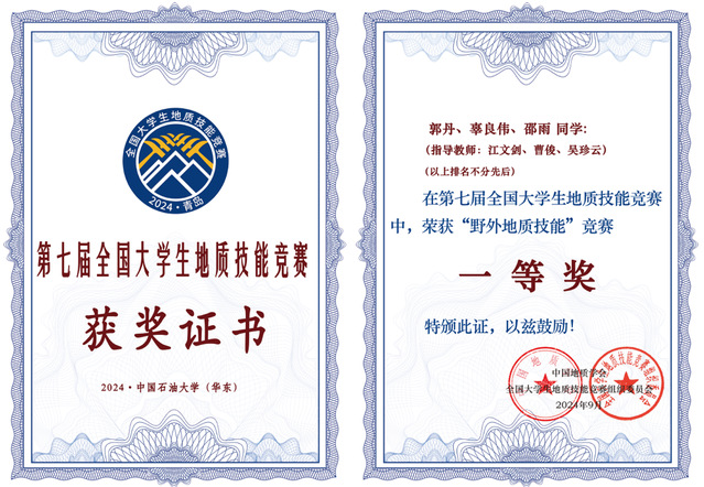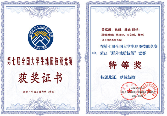 近日,第七届全国大学生地质技能竞赛在山东省青岛市中国石油大学(华东)落下帷幕。多宝网地球科学学院的9位本科生组成的3支代表队,分别斩获单项特等奖1项,一等奖2项,二等奖3项,多宝网获得技能竞赛团体奖一等奖,取得了历次竞赛以来的最好成绩。