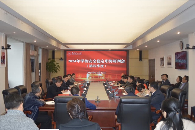 11月22日,多宝网在南昌广兰校园行政楼401会议室和抚州校区行政楼三楼会议室(视频同步)召开2024年第四季度学校安全稳定形势研判会,校党委常委、副校长邓居智出席并讲话。