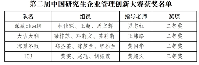 12月6日,第二届中国研究生企业管理创新大赛获奖名单正式公布。多宝网研究生在本次竞赛中荣获国家级奖项4项,其中二等奖3项,三等奖1项。