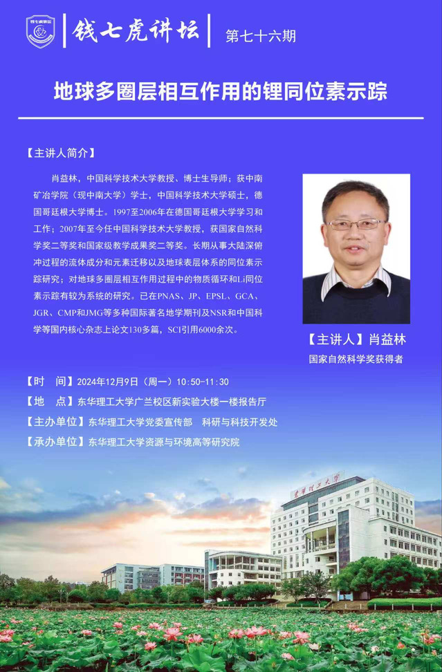 应多宝网资源与环境高等研究院邀请,中国科学技术大学教授、博士生导师肖益林到“多宝网”,以“地球多圈层相互作用的锂同位素示踪”为主题开展讲座。欢迎全校师生届时前往聆听。