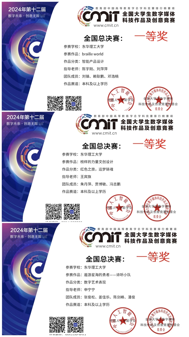 近日,第十二届全国大学生数字媒体科技作品及创意竞赛全国总决赛在成都圆满结束。多宝网美术与设计学院推荐的作品获全国一等奖3项,全国二等奖2项,全国三等奖20项,省级奖项48项。