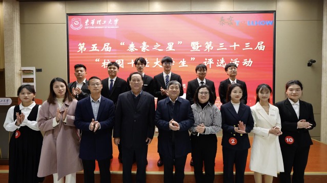 本次评选分为“风采展示”和“你问我答”两个环节。15名候选人按照抽签顺序依次上台,围绕“爱学习、勤实践、愿奉献、有贡献”四个方面分享学习心得,讲述奋斗历程,并抽题作答。最终成绩由现场打分、赛前微信投票及泰豪体验实践加权计算产生。经过激烈角逐,王泽成、李怡芬等10人荣获第五届“泰豪之星”暨第三十三届“校园十佳大学生”荣誉,邹思颖等5人获得提名奖。