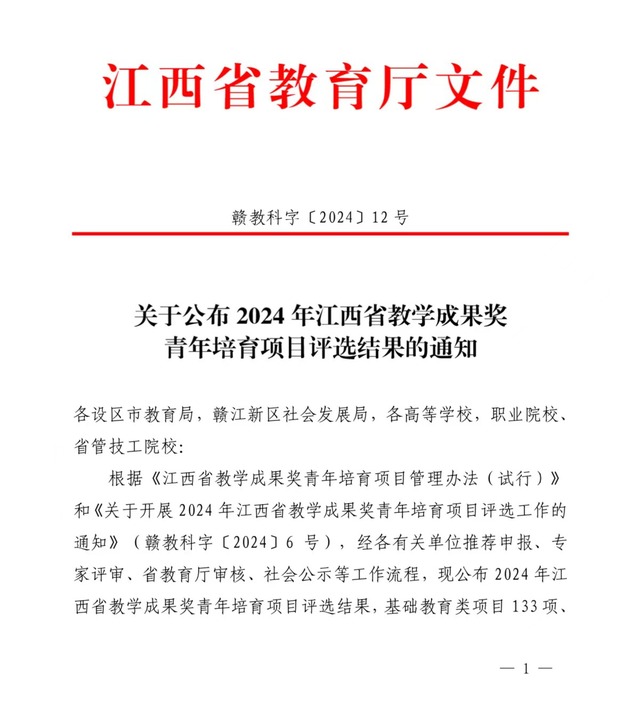 江西省教学成果奖青年培育项目由江西省教育厅组织实施,每四年评审一次,2024年共立项597项,其中基础教育类项目133项、职业教育类项目167项、本科教育类项目206项、研究生教育类项目91项。此次学校获批的项目涵盖大思政教育、教学综合改革、新工科、新文科、创新创业教育、管理学、工学等多学科领域。(文/图 李柯瑶)