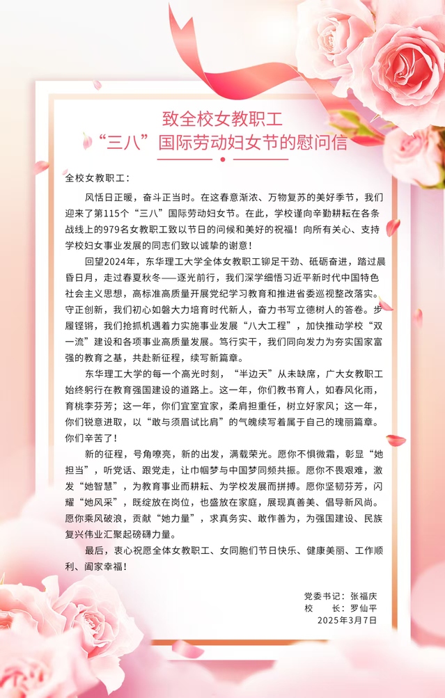 致全校女教职工“三八”国际劳动妇女节的慰问信
