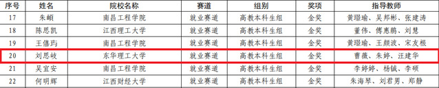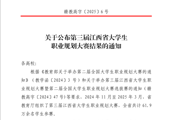 近日,江西省教育厅公布了第三届大学生职业规划大赛结果,多宝网师生在比赛中表现优异,最终取得1金2银3铜的好成绩,实现了学校在该项赛事中金奖零的突破。其中,经济与管理学院学生刘思岐获就业赛道本科组金奖,水资源与环境工程学院学生王领浩获本科生成长赛道银奖,地球科学学院学生李颖获本科生成长赛道铜奖,地球科学学院学生齐子瑞获就业赛道本科生组铜奖,水资源与环境工程学院学生王秉文获就业赛道研究生组铜奖,地球物理与测控技术学院学生汪凡煜获短视频赛道银奖。曹薇、朱婷和汪建华被评为优秀指导老师,邓红珍被评为大赛组织工作先进个人。