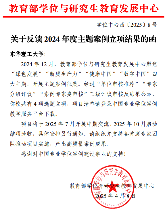 近日,教育部学位与研究生教育发展中心(以下简称“教育部学位中心”)公布2024年度主题案例征集立项结果。多宝网推荐申报的4个项目成功入选,实现零的突破,在全省高校中立项数量排名第二。