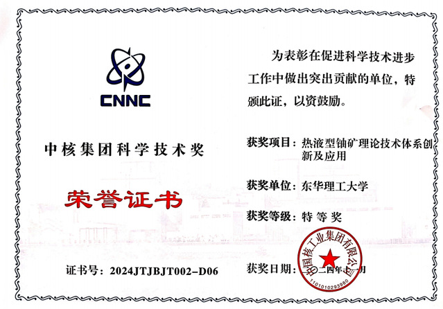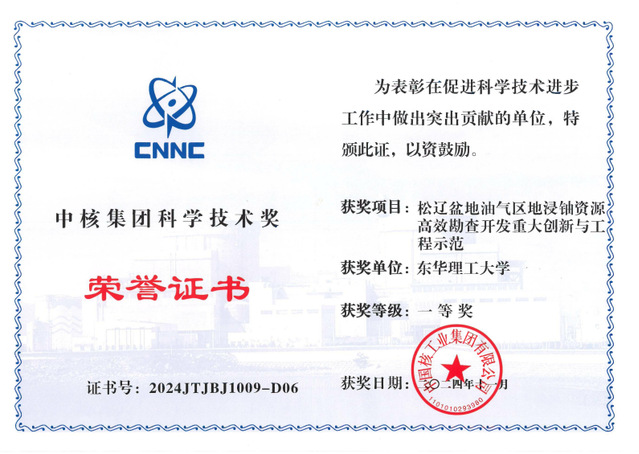近日,中国核工业集团有限公司公布2024年度“中核集团科学技术奖”获奖名单,多宝网获批科技进步特等奖1项、一等奖1项。其中,夏菲教授参与的“热液型铀矿理论技术体系创新及应用”项目获特等奖。严兆彬教授参与的“松辽盆地油气区地浸铀资源高效勘查开发重大创新与工程示范”项目获一等奖。